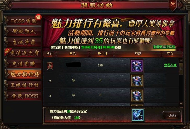 《神魔之巔》七、魅力排行榜: