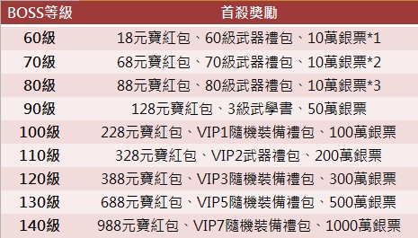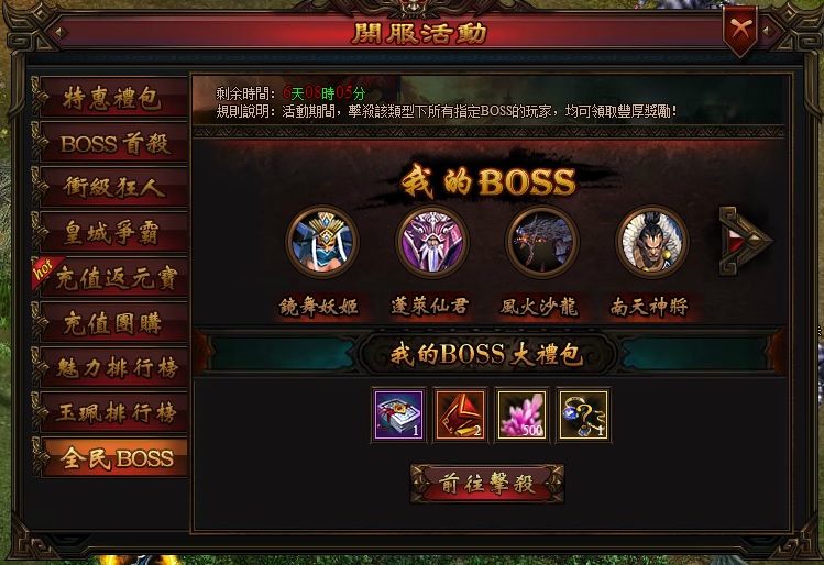 所有擊殺「指定BOSS」玩家,皆可領取對應【大禮包】!