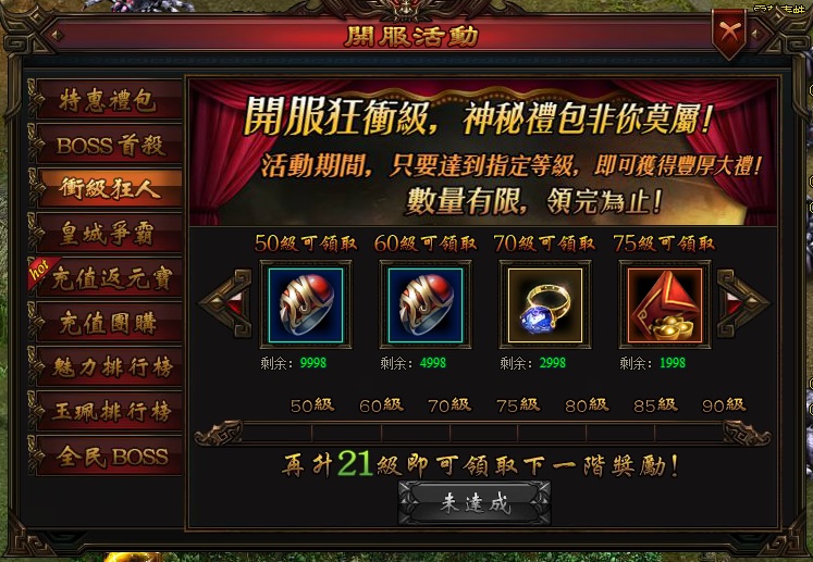 活動期間,玩家達到相應的等級,可以領取到豐厚的等級獎勵,數量有限敬請把握!